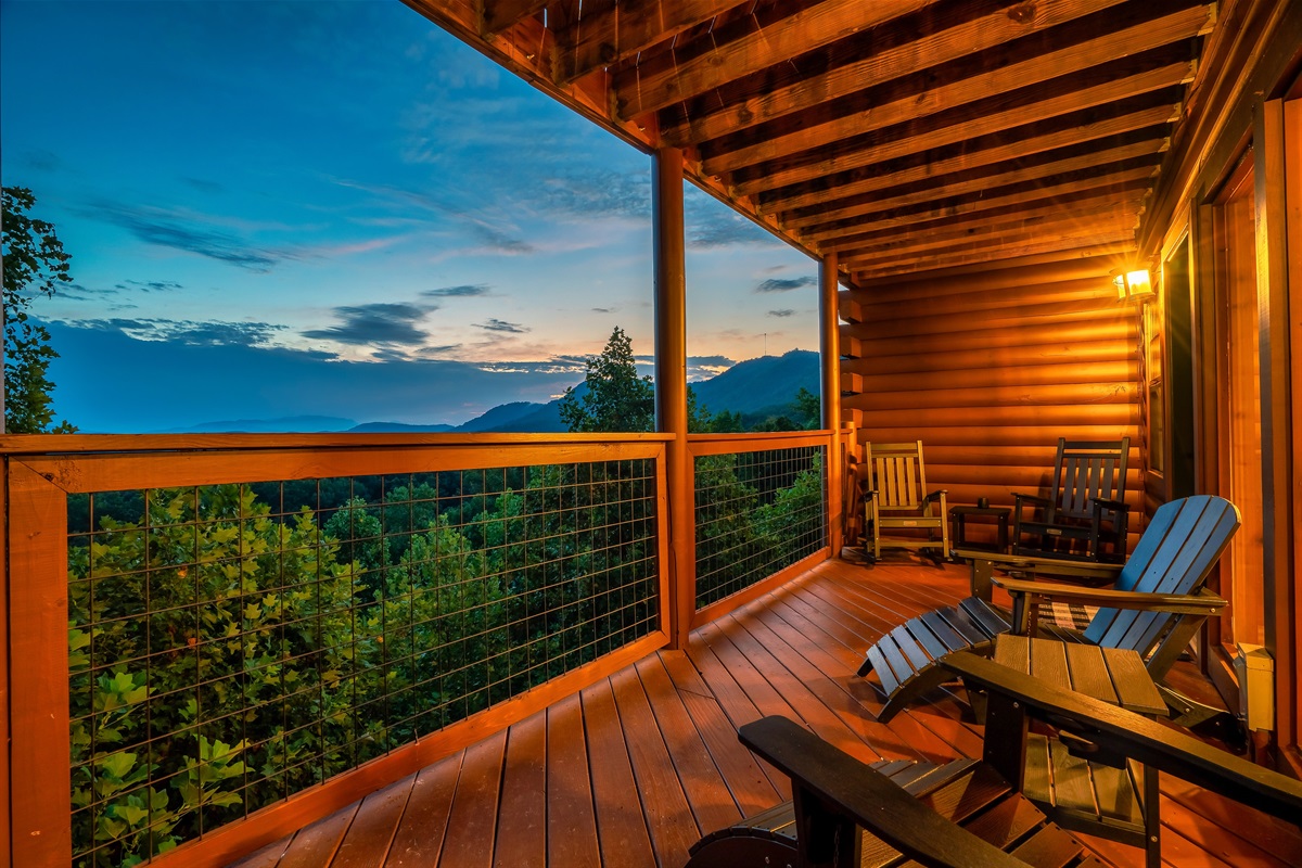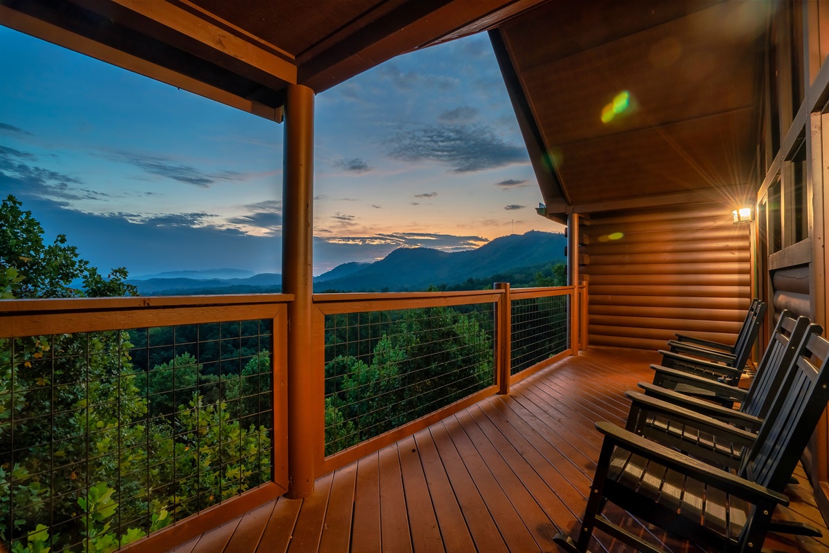 From the theater area you can access the 3rd level deck with 4 rocking chairs and more amazing views of Mount Leconte.